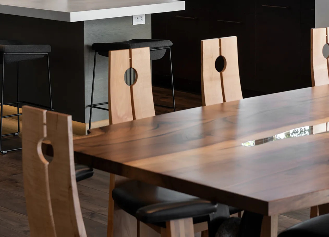 Designed for those who appreciate the warmth of natural wood without the luxury price tag, the ‘Lumen’ dining table offers clean lines, elegant simplicity, and authentic character.