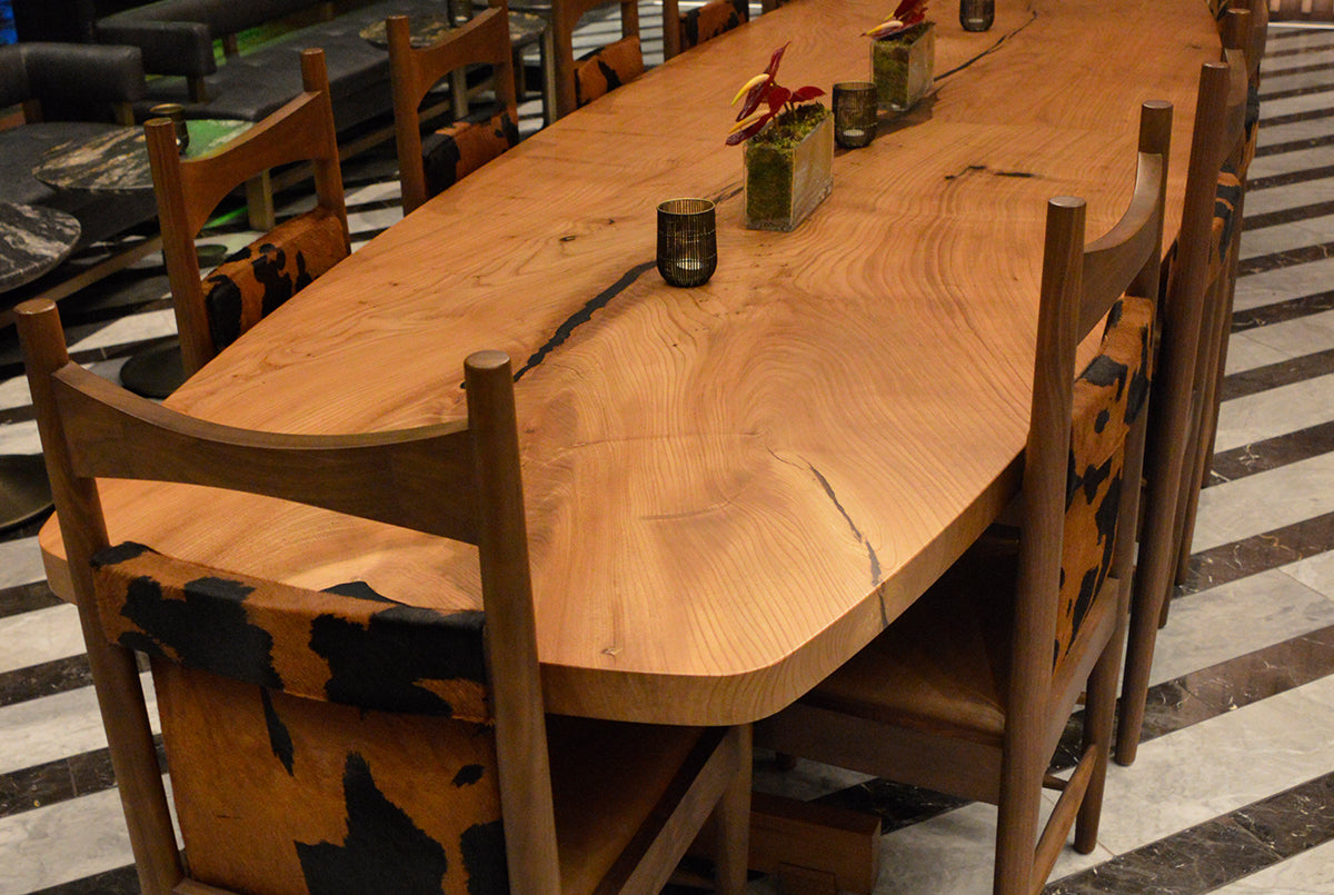 Handcrafted from solid, character-rich hardwood slabs